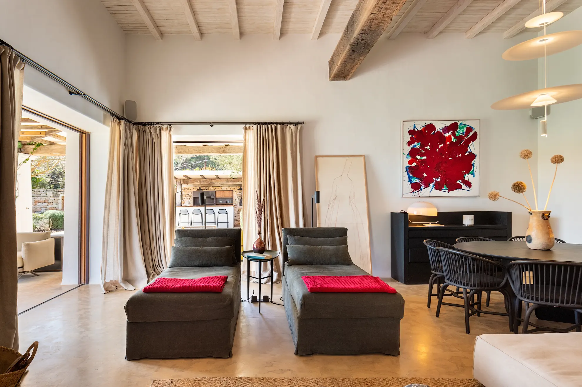 Ideally situated in a quiet & peaceful setting, with good road access and only a few minutes from Santa Eulalia and the beaches. Ibiza town, and the airport is a 30 minute drive away.