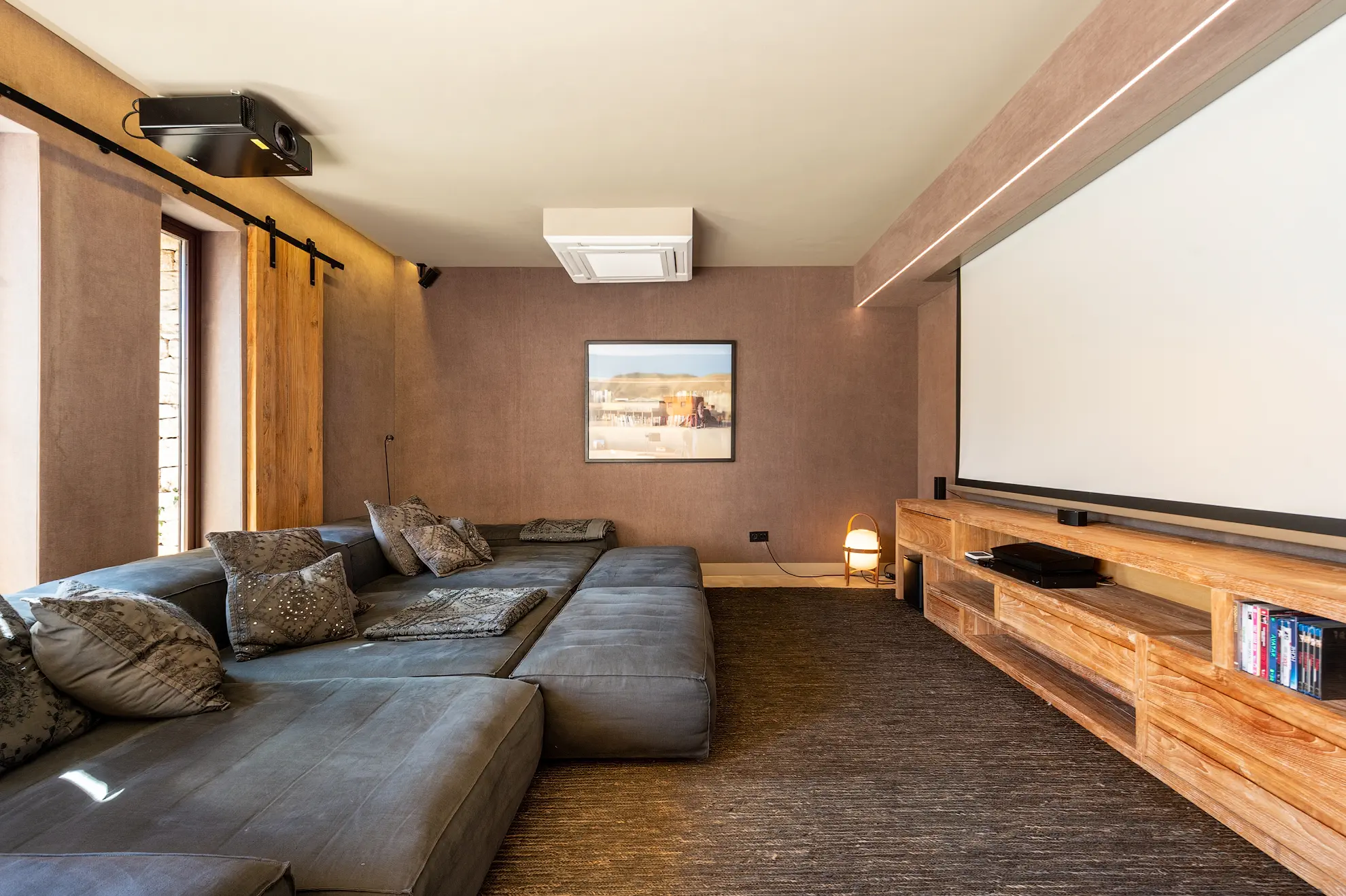 Two contemporary ensuite double bedrooms set on the same floor as is a study/library/ TV room with a home cinema.