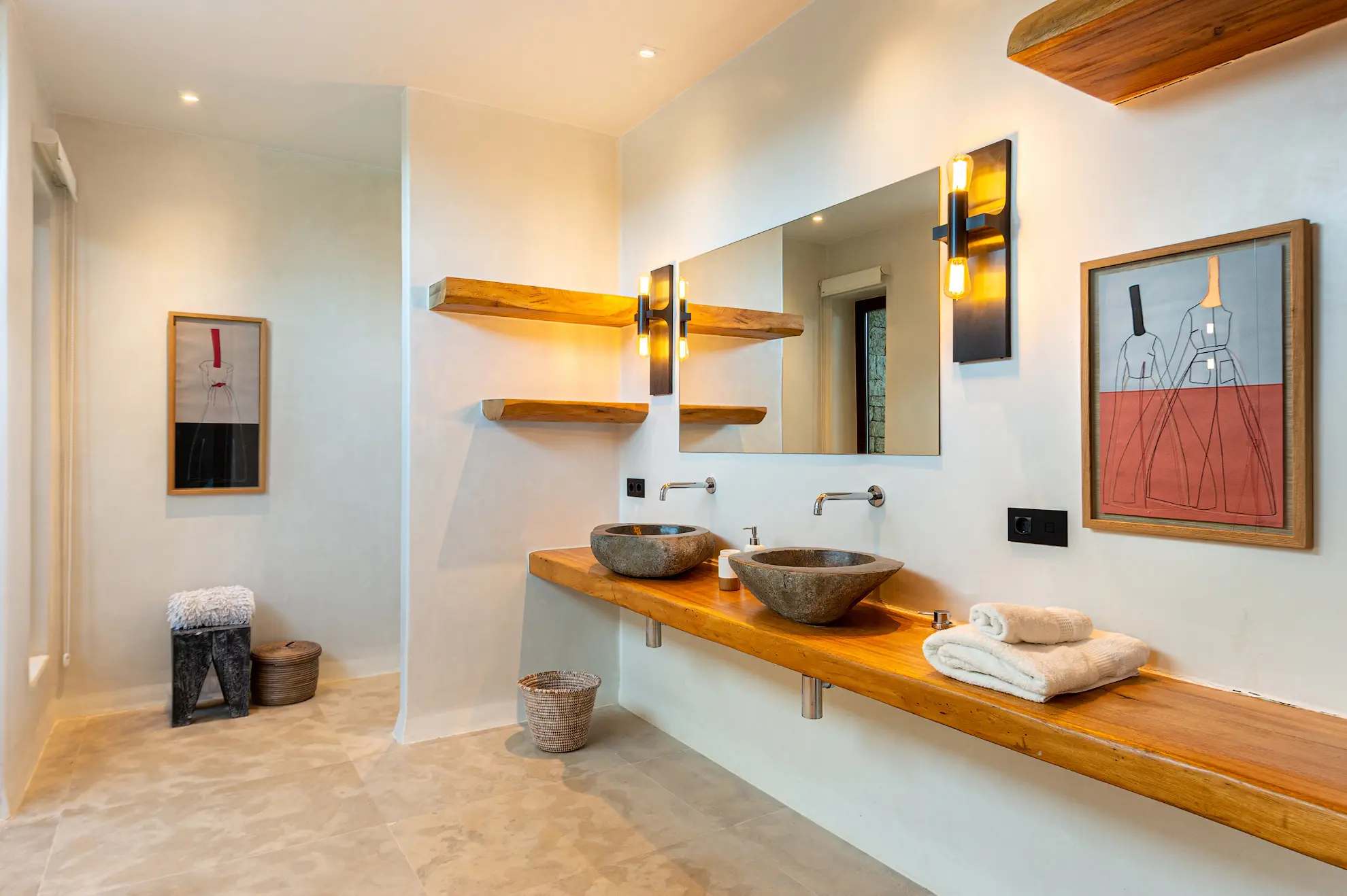 A few steps lead to the annex nearby that houses two double bedrooms with en suite bathrooms with private terraces and independent access.